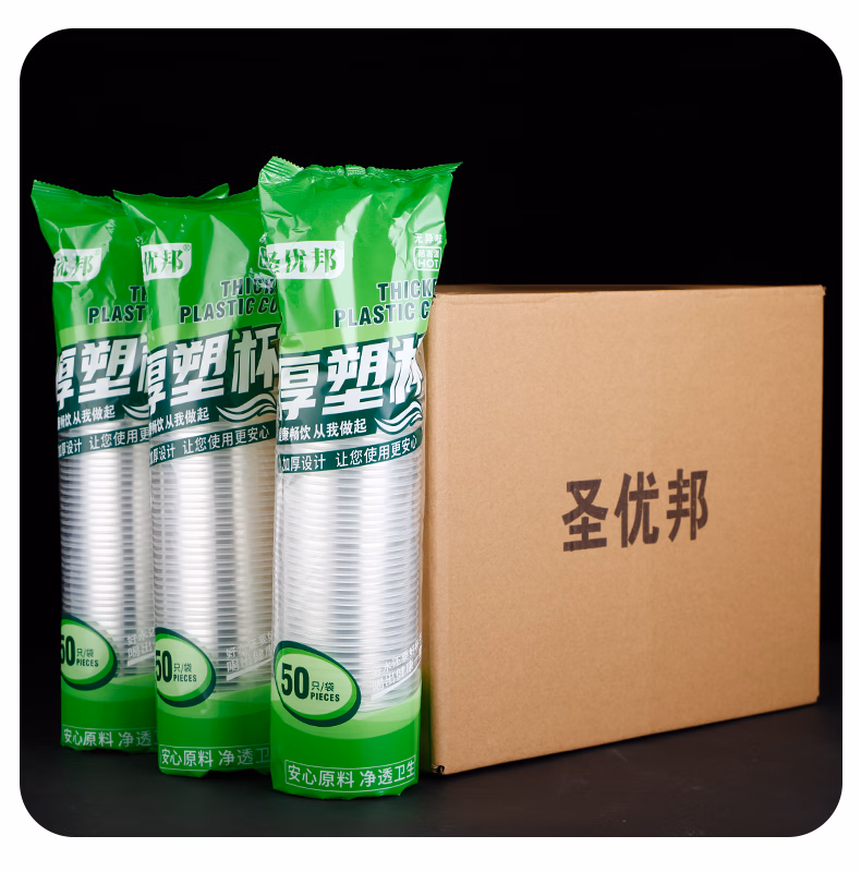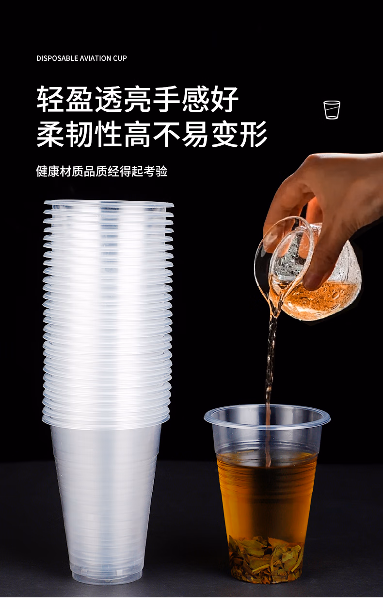 一次性杯子塑料水杯批发食品级家用加厚茶水杯商用整箱大号航空杯